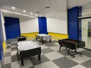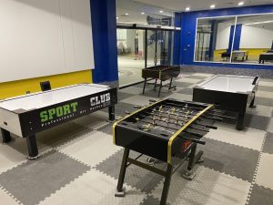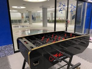 به منظور ایجاد نشاط و شادابی هر چه بیشتر کودکان در کنار والدین، مجموعه نسبت به ایجاد یک اتاق بازی در محیط استخر اقدام نموده که بازیهایی همچون فوتبال دستی و ایرهاکی در آن با محیطی زیبا و مفرح پیش بینی شده اند که با توجه به امکان《بازی همزمان چند نفره》سبب رقابتی شدن بازیها وانگبزه و تحرک بیشتر کودکان خواهد شد.
