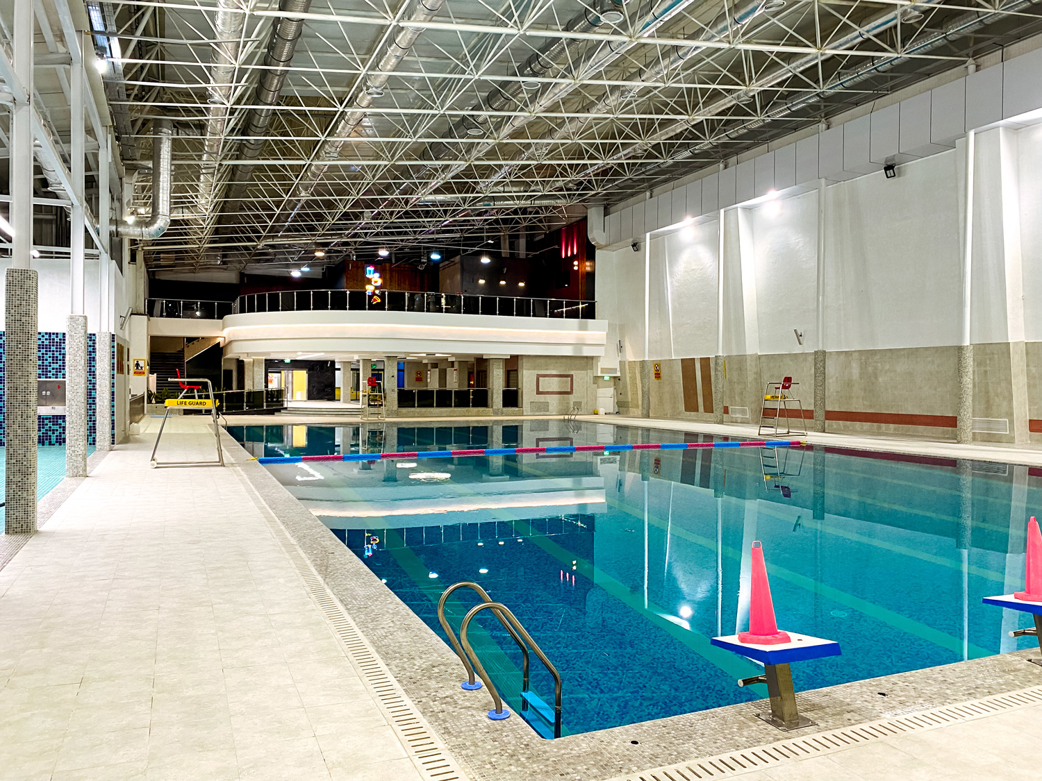 کاشی کاری زیبای محیط این استخر از ویژگیهای بارز آن میباشد، و در کنار استخر نیز تختهای استراحت پیش بینی شده تا شاگردان عزیز علاوه بر استراحت از چشم انداز زیبای نمای استخر نیز بهره مند باشند، با این توضیح که استفاده از سازه فضا کار و نحوه نور پردازی استخر قهرمانی به گونه ای است که مشاهده کل ابعاد استخر تا کف آن را هم برای ناجیان و هم برای شناگران عزیز به طور کامل روشن و چشم اندازی زیبا را خلق می نماید. از آنجا که همواره سر خوردن در استخرها باعث ایجاد حادثه میگردد , این مجموعه با استفاده از سیستم گرمایش از کف سعی نموده تا محیط اطراف کاسه استخر را همواره خشک نگه دارد تا از بروز حوادث جلوگیری یا به حداقل برساند .